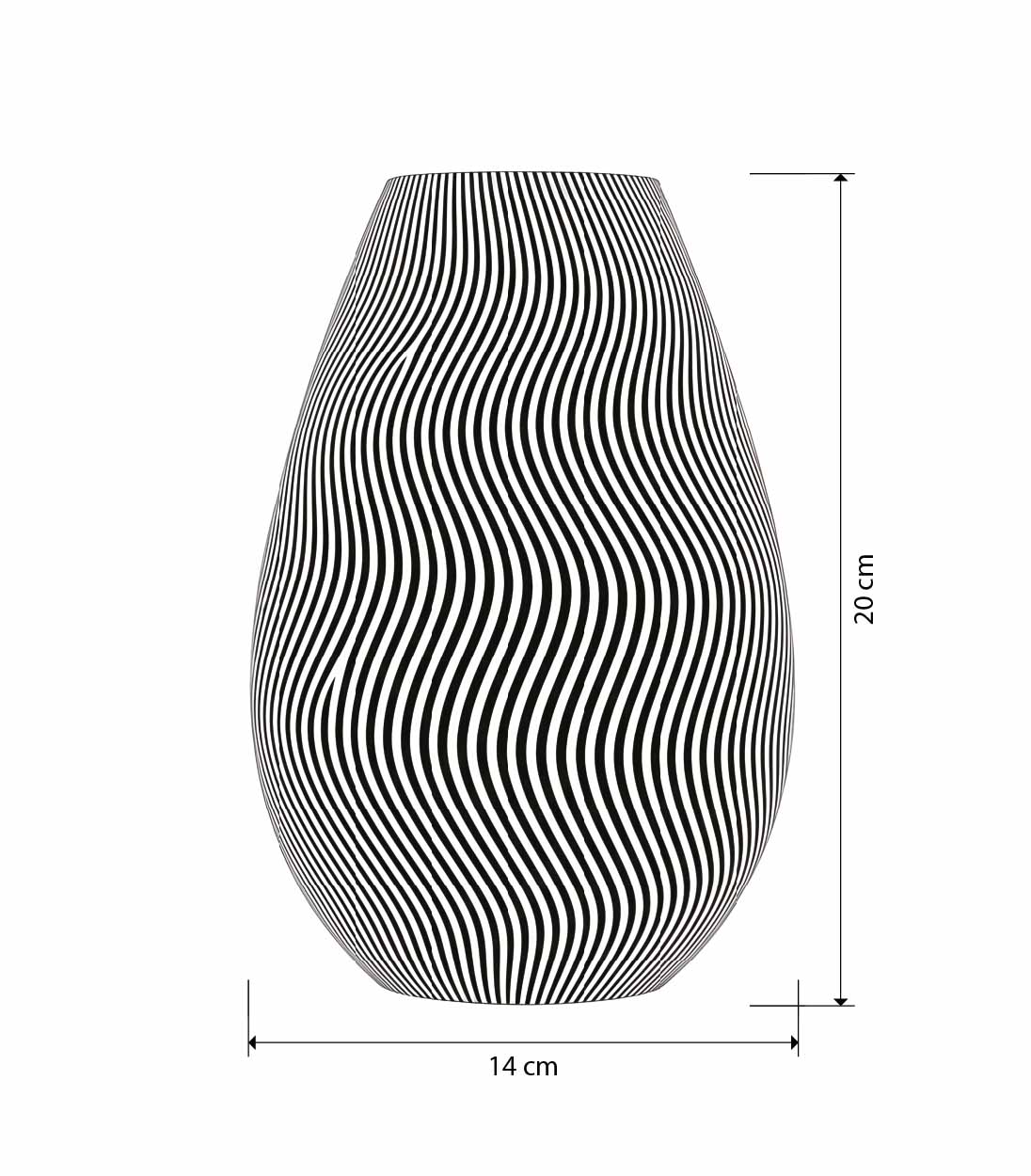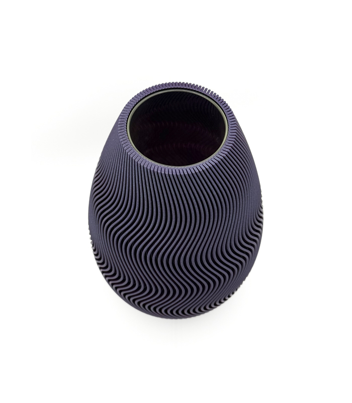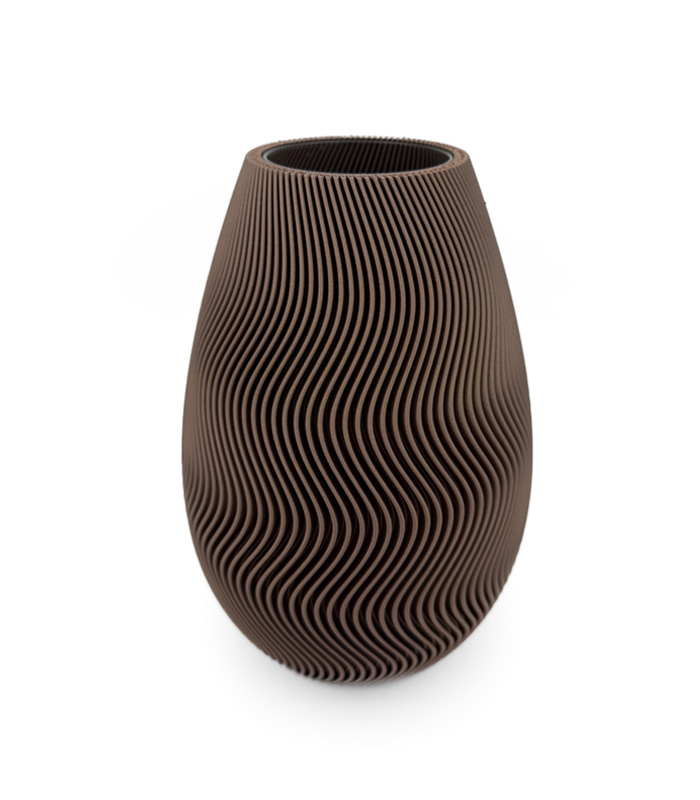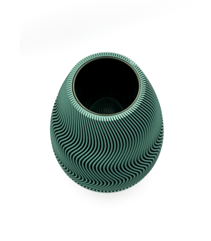 Luma wird mit präzisem 3D-Druck gefertigt; jede wellenförmige Schicht wird sorgfältig auf die vorherige gelegt, um die sanfte und geordnete bauchige Form zu erzeugen. Feine und detaillierte Strukturen verstärken die Einzigartigkeit und Authentizität jeder Vase und verwandeln sie in ein lebendiges Kunstwerk.