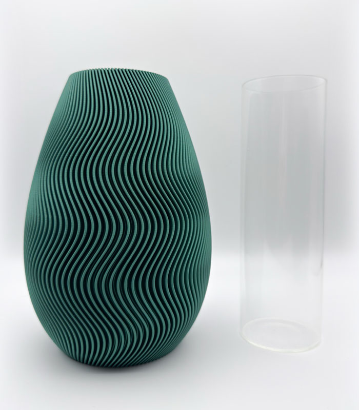 - Das verwendete Material, PLA auf Maisstärkebasis, ist temperaturempfindlich. Daher sollte die Vase keiner direkten Sonneneinstrahlung oder Temperaturen über 40 °C ausgesetzt werden.